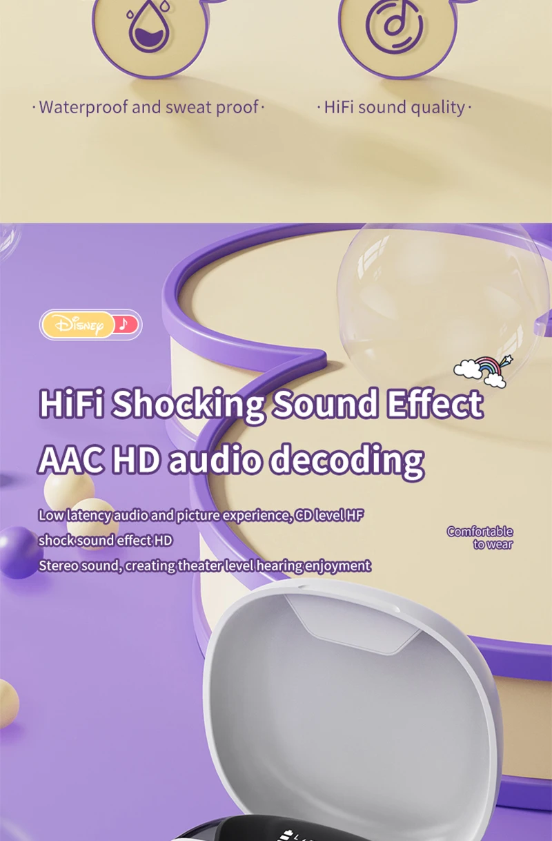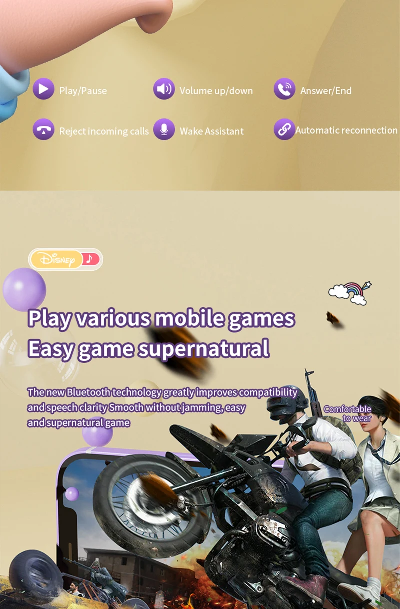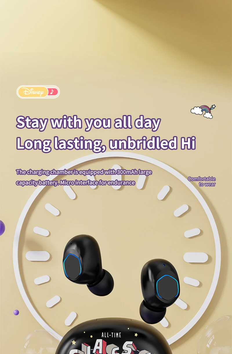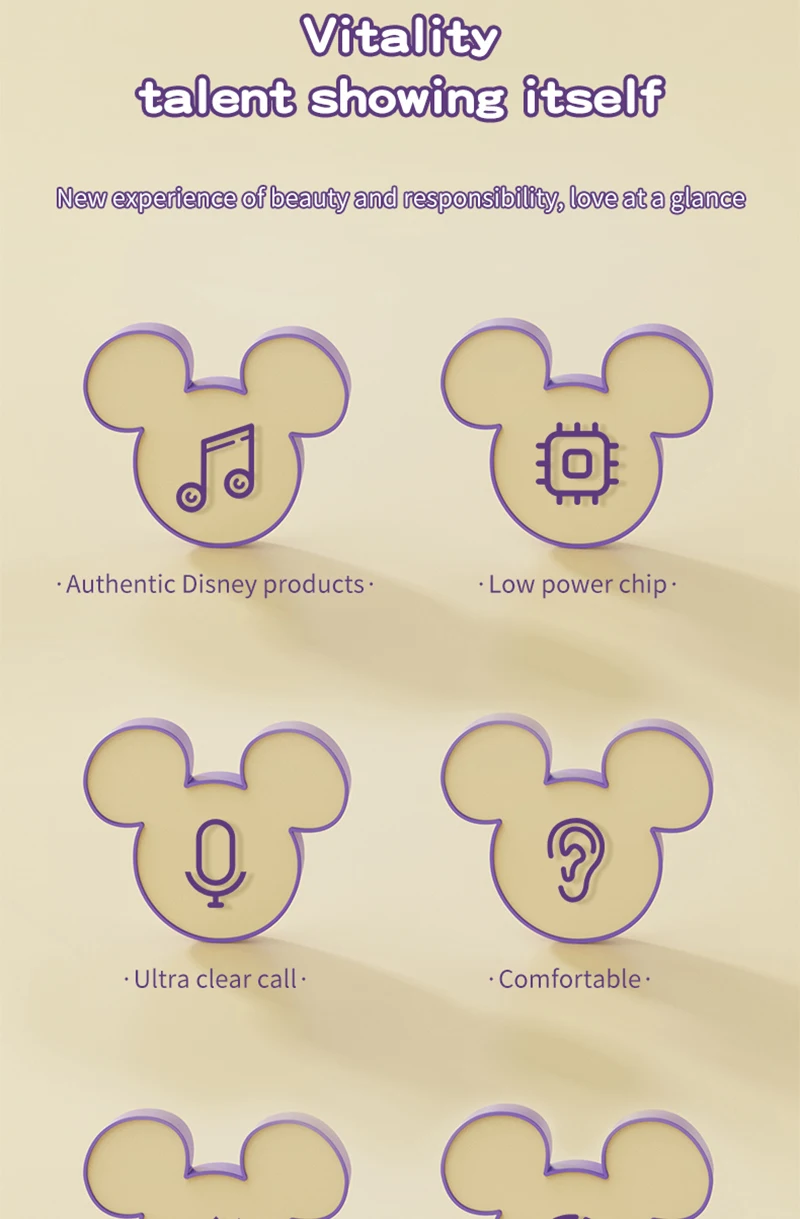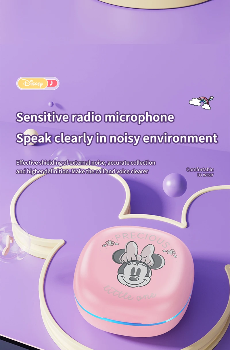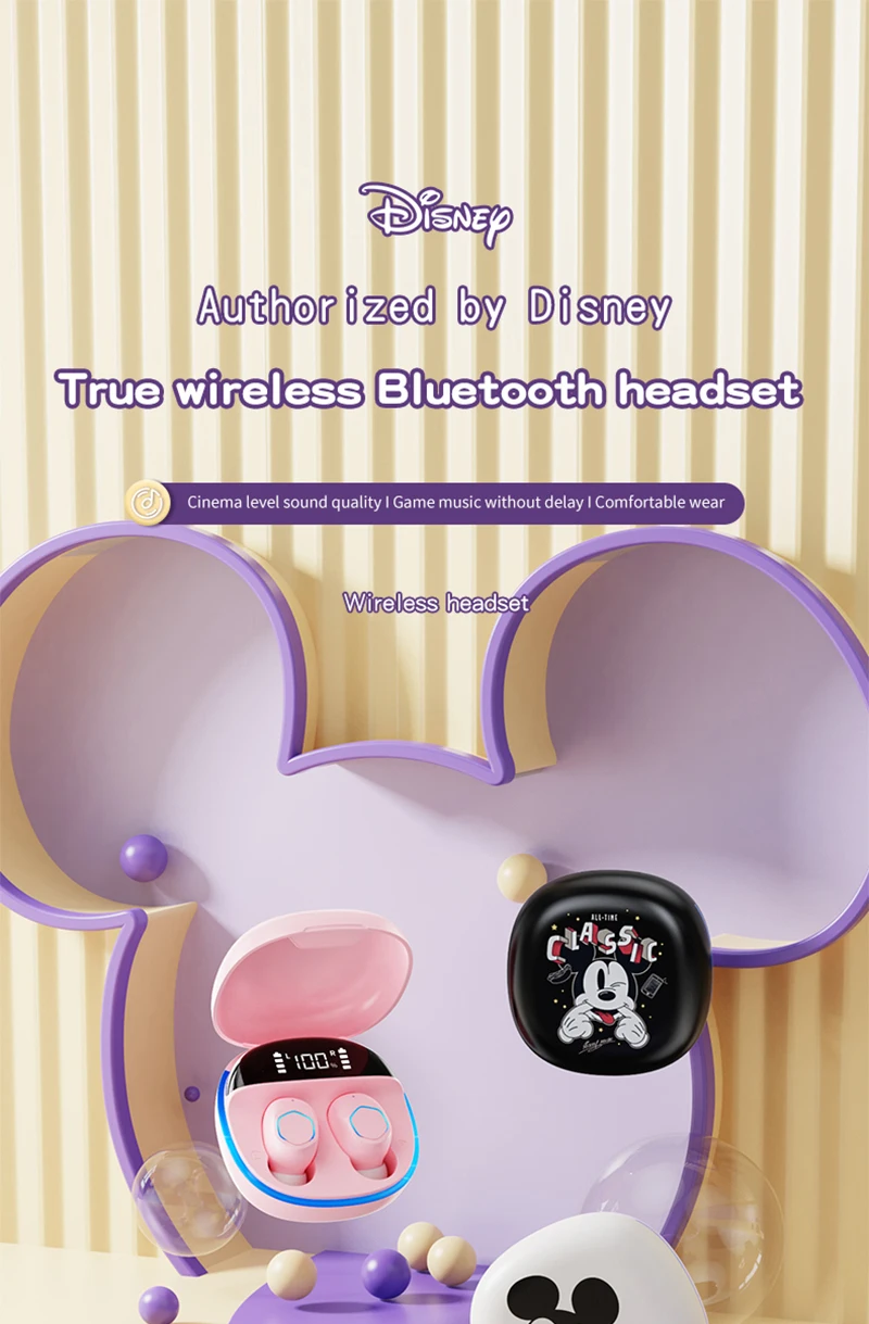 Disney Bluetooth Earphones Minnie Mickey Mouse TWS Wireless Headphones Donald Duck Noise Reduction Winnie the Pooh Music Headset